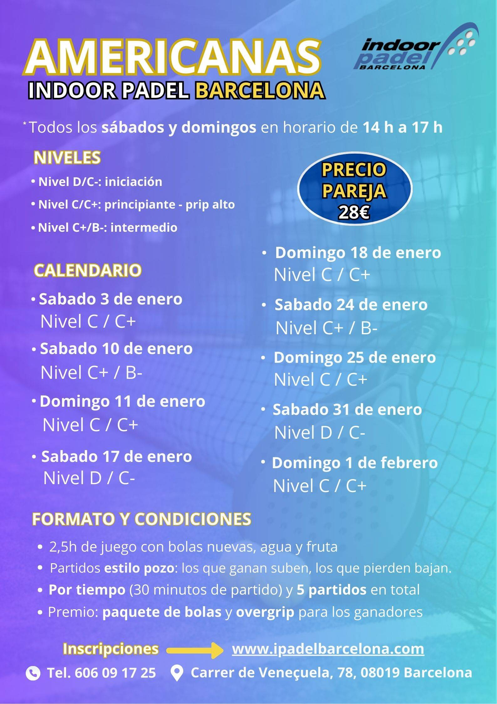 Seguimos con las americanas de fin de semana en este 2026! Inscripción por parejas a través de la web (en el apartado americanas), busca la que mejor se adapte a tu nivel, todos los sabados y domingos en horario de 14h a 17h. Si no tienes pareja te ayudamos a buscar una llámanos al 606 09 17 25. Vamos!!